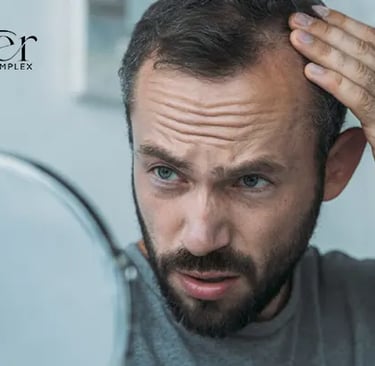 لدى الرجال: يرتبط الصلع الذكوري بهرمون DHT الذي يؤدي إلى انكماش بصيلات الشعر تدريجيًا.